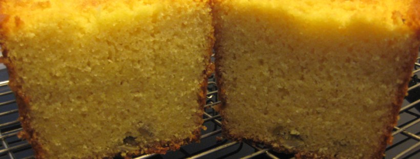 I used a bread loaf pan and it came out pretty nice and close to the texture of Ju’s sugee cake, crumbly and nutty! (: