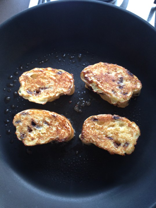 1) Cut the steamed carrot cake to small pieces. Again, I do prefer it a little smaller, so that it will crisp up more. In a non-stick pan, add the shallot oil and fry the carrot cake till golden brown and crispy. Have the heat on medium-high.