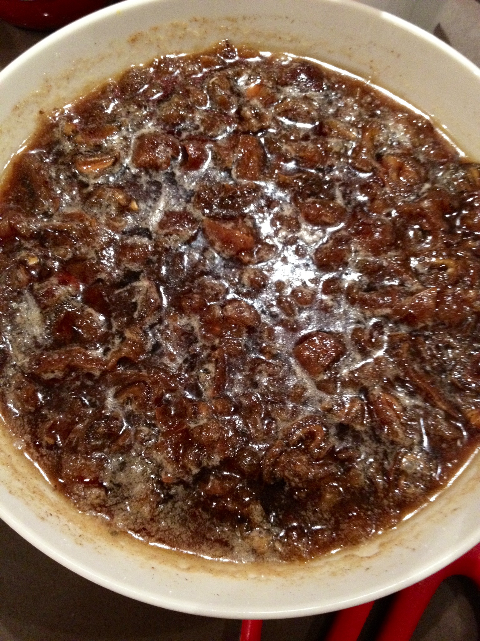 3) Fold the egg mixture into the flour mixture until combined. Then mix in the dried figs and nuts.