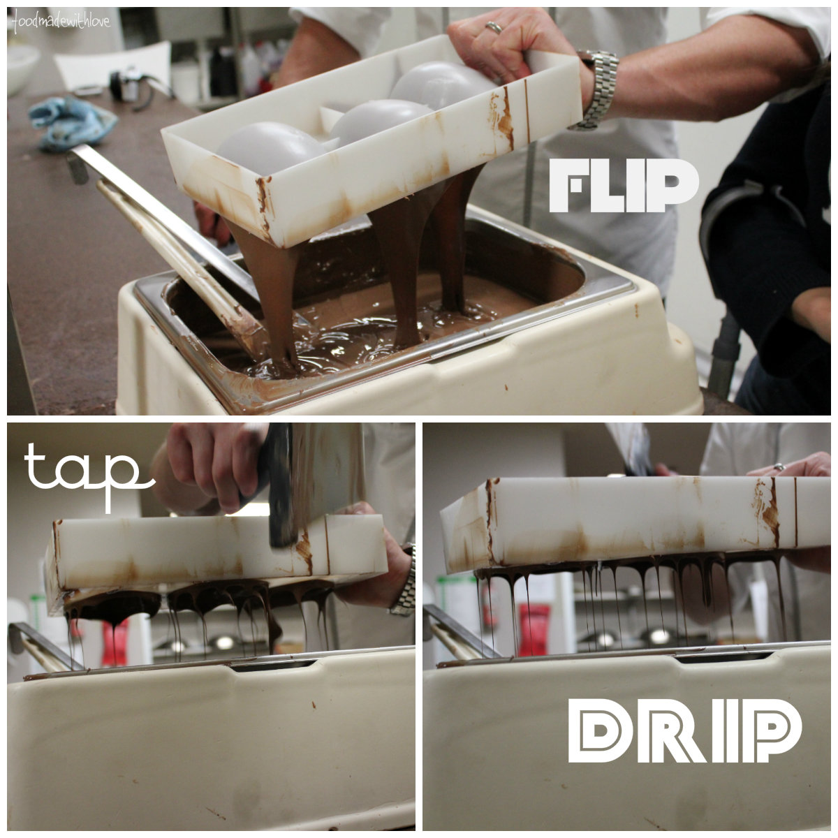 Tim taught us the art of tempering chocolate and the importance of doing it – so that we can get smoother and shinier chocolates! hehe We also learnt that different types of chocolate temper at different temperatures. Tim made it look so easy spreading the chocolate out and scraping it back again. It’s like second nature to him! He could do it with his eyes shut! hehe Once the chocolate was tempered, it was ready to be used for our Easter Eggs!