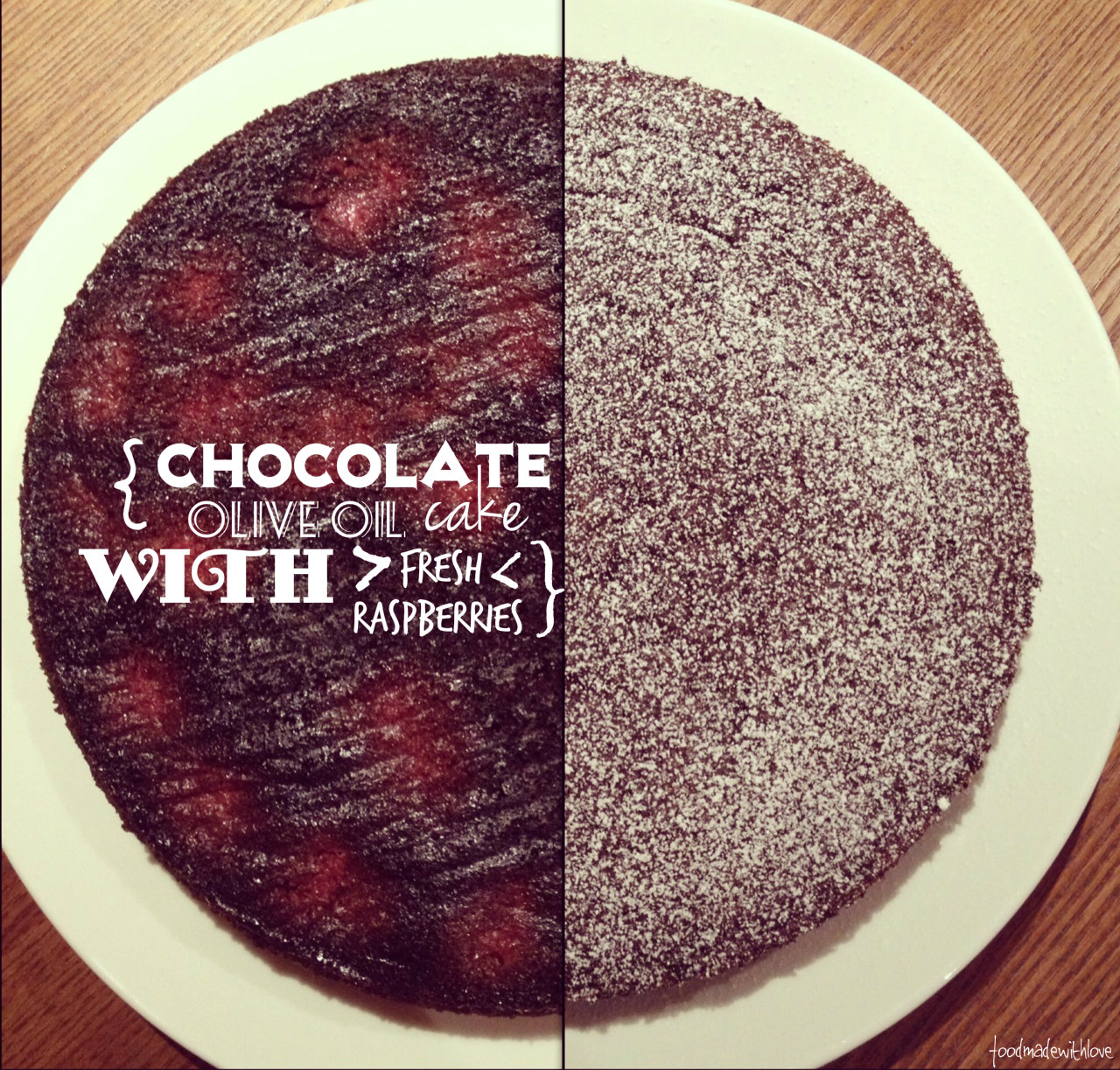 Weekend Baking : Chocolate Olive Oil Cake with Fresh Raspberries